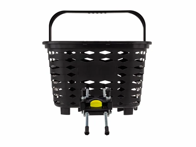A Cistella Basic Dianteira (KF415) é uma cesta plástica que suporta cargas até 10Kg ou 18 litros, instalada na parte frontal da bicicleta à frente do guidão, no cabeçote do quadro, com engate rápido, ideal para quem usa bicicletas para mobilidade ou lazer e precisa transportar objetos pequenos com fácil acesso durante o pedal, ou precisa tirar a cesta da bicicleta para carregar pela alça.