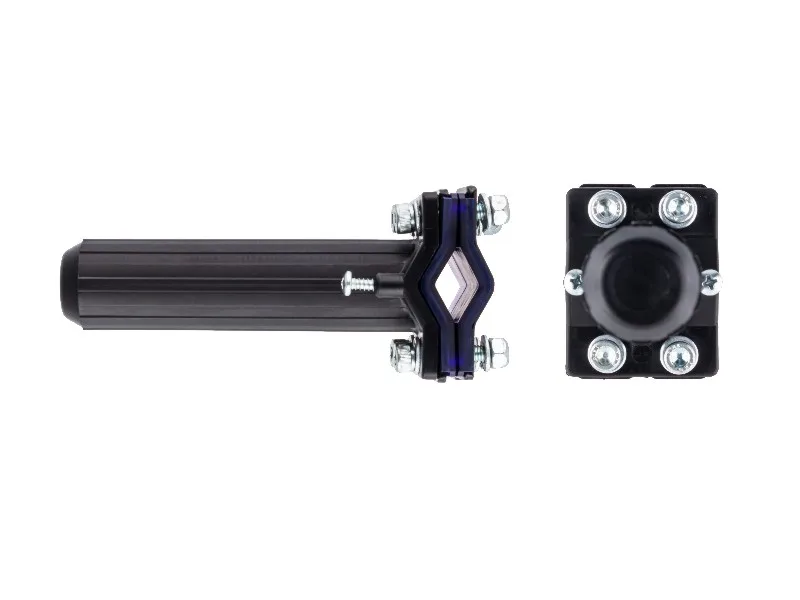 Fixação: Aletas abraçadeiras e parafusos metálicos