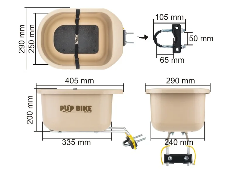 Conforto: Conforto para o animal graças as bordas arredondadas e o tapete anti-derrapante, e para o ciclista com o sistema de engate rápido e pelas opções de ajuste do avanço/recuo em relação ao guidão.