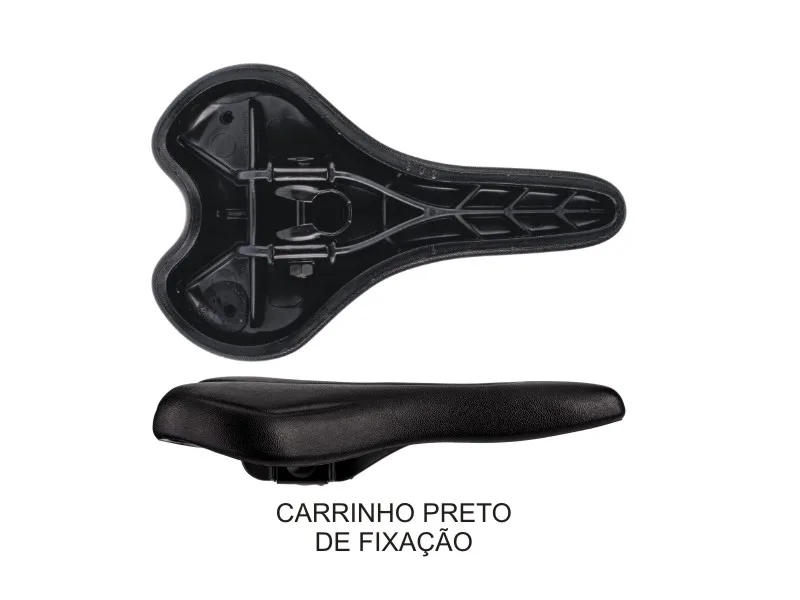 Fixação: Possui carrinho metálico simples na cor preta, compatível com canotes de 7/8" (22,2 mm), fixado diretamente na base plástica.