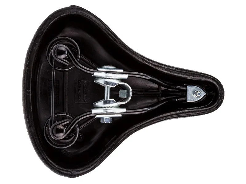 Fixação: Possui arame (trilho) com molas que garantem o amortecimento e já vem equipado com carrinho metálico compatível com canote de 7/8" (22,2 mm), ideal para ajuste de posição e ângulo.